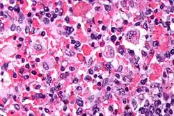يستخدم نوع واحد من العلاجات الكيميائية وهو (اتوبسيد) -(VP16)(ETOPOSIDE) الذي يسيطر على المرض ويوقف من النشاط غير الطبيعي لخلايا المناعة، كما يستخدم نوع آخر من العلاج الكيميائي( مثوتركسيت) (Methotrexate) يعطى عن طريق السائل الشوكي للمريض وهذا العلاج يعطى لعدد معين من المرضى الذين يعانون من انتشار المرض لسحايا المخ والحبل الشوكي.