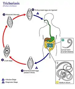 |CitationClass=تم تجاهله (مساعدة) - "Parasites - Trichuriasis (also known as Whipworm Infection) Prevention & Control". CDC. January 10, 2013. مؤرشف من الأصل في 8 ديسمبر 2018. اطلع عليه بتاريخ 20 مارس 2014. الوسيط