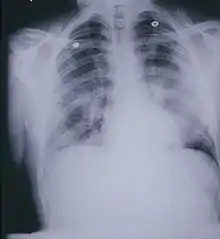 | المضاعفات | إنتانات رئوية، التليف الرئوي، والقلب الرئوي. |