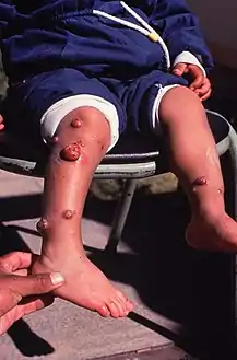 ![]() المرحلة المزمنة من داء كاريون (الثآليل البيروفية) المرحلة المزمنة من داء كاريون (الثآليل البيروفية) | |