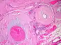 داء نشواني، وعاء دموي (بالإنجليزية: Amyloidosis, blood vessels, H&E)