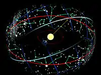 الکوکبات الفلكية عند دائرة البروج ومسار الشمس