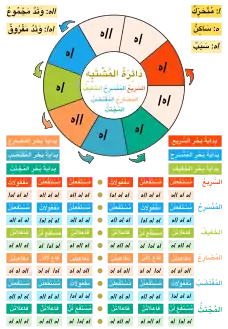 - إذا ابتدأت من الوتد المجموع الثاني (أي //ه) إلى إتمام الدائرة (عكس عقارب الساعة)، تتحصل على تفعيلات شطر بحر المضارع، وهي: مَفَاْعِيلُنْ فَاْعِ لَاتُنْ مَفَاْعِيلُنْ، فيكون بذلك وزن البحر: