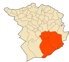 - "المرسوم التنفيذي رقم 91/306، المؤرخ في 24 أوت 1991، الذي يحدد قائمة البلديات التي ينشطها كل رئيس دائرة" (PDF). 04 سبتمبر 1991: 1581. مؤرشف من الأصل (PDF) في 25 أكتوبر 2019. اطلع عليه بتاريخ 25 أكتوبر 2019. الوسيط