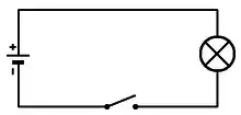 مفتاح التيار يتحكم في إضاءة أو إطفاء المصباح. فهو يعمل على إغلاق الدارة الكهربائية ليمر التيار (حيث تكون الدائرة الكهربائية كاملة) ويضيء المصباح، نقول أن الدارة مغلقة. أو يعمل على فتح الدائرة أو قطعها فلا يمر التيار الكهربائي في الدائرة المقطوعة، ولا يضيء المصباح ونقول أن الدارة مفتوحة.