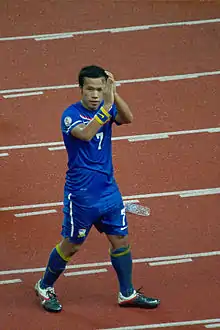 و هو يلعب مع منتخب تايلند لكرة القدم.