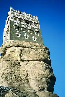 يتكون القصر من سبعة أدوار متناسقة بتصميمها مع التكوين الطبيعي للصخرة (أساس البنيان) وعند بوابته توجد شجرة (الطالوقة) المعمرة التي يقدر عمرها ب 700 عام.