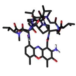 داكتينومايسين ، المعروف أيضا باسم أكتينومايسين D، هو دواء للعلاج الكيميائي الذي يستخدم لعلاج عدد من أنواع السرطان.[3] وهذا يشمل ورم ويلمز ، الورم السرطاني العضلي المخطط المُتصلب ، ورم إوينغ، أورام الأرومة الغاذية ، و سرطان الخصية ، وأنواع معينة من سرطان المبيض.[3] يتم إعطاء داكتينومايسين عن طريق الحقن في الوريد.[3]