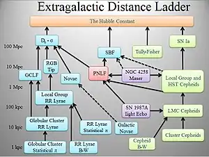 دالة إضاءة السديم الكوكبي (بالإنجليزية: Planetary nebula luminosity function) هي مؤشر ووسيلة ثانوية.[1] في علم الفلك لتحديد مسافة المجرات وتحتل مكانا هاما على سلم المسافات خارج المجرة. وهي الشمعة المعيارية الوحيدة التي يمكن تطبيقها على جميع المجرات الكبيرة في عنقود مجرات العذراء العظيم. تستخدم دالة إضاءة السديم الكوكبي الخط المحظور للأيون الأكسجين المضاعف (O III) λ5007 والموجود في كل السديم الكوكبية التي تتكون من جمهرة نجوم قديمة (جمهرة النجوم الثانية).[1] ويمكن استخدام دالة إضاءة السديم الكوكبي لتحديد المسافات إلى المجرات الحلزونية والإهليلجية على حد سواء على الرغم أن جمهرة النجوم قد تكون مختلفة تماما في هذة المجرات.[2]