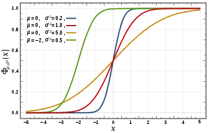 دالة التوزيع التراكمي للتوزيعات الطبيعية في الصورة أدناه.