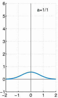 دالة ديراك نهايةً (بمفهوم التوزيع في الرياضيات) لمتتالية من توزيعات احتمالية طبيعية ممركزة حول الصفرs حينما .