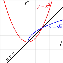 تصير الدالة هذه تقابلا إذا قُصر مجال تعريفها إلى مجموعة الأعداد الموجبة، فتصير الدالة العكسية لها كما يلي:
