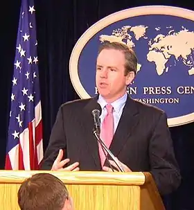 - Youthful Bush aide climbing ranks as Hughes moving out - Plainview Daily Herald Retrieved 2018-04-16.نسخة محفوظة 06 2يناير8 على موقع واي باك مشين.