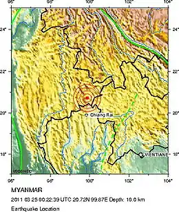 موقع زلزال بورما عام 2011 في يوم 25 مارس