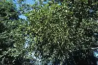 نبات دبق أبيض متطفلاً على شجرة مثمرة