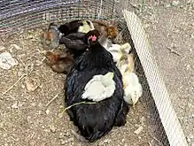 الدجاج وهو حيوان مستأنس، ويعد من الطيور الدواجن، قصير الجناحين والذَّنب، ذكره يسمى ديكًا. يُعد الدجاج من أكثر الحيوانات الأليفة شيوعًا وانتشارًا، ويبلغ إجمالي عدد الدجاج 23.7 مليار اعتبارًا من عام 2018.[1] ارتفاعًا من أكثر من 19 مليار في عام 2011.[2] يوجد الدجاج في العالم أكثر من أي طائر آخر.[2] يربي البشر الدجاج في المقام الأول كمصدر للغذاء (اللحوم والبيض)، وبشكل أقل شيوعًا كحيوانات أليفة. كان الدجاج يربى في الأصل لمصارعة الديوك أو للاحتفالات الخاصة، ولم تبدأ تربية الدجاج للغذاء حتى العصر الهلنستي (بين القرنين الرابع والثاني قبل الميلاد).[3][4]
