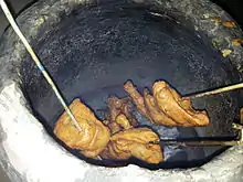 ينضج الطبق تقليدياً في درجات حرارة عالية في التندور (فرن الطين)، ولكن يمكن أيضاً أن يتم اعداده على موقد الشواء التقليدي.