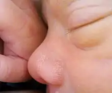 بقع الحليب على أنف طفل يبلغ من العمر أسبوعا واحدا