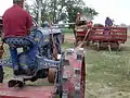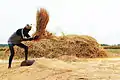 ولكن في المناطق المتقدمة غالبًا ما يتم ذلك بواسطة آلات وعادة ما تكون حاصدة مركبة التي تحصد وتدرس وتذري الحبوب بينما هي في الحقل.