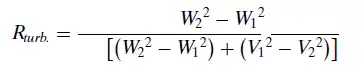 بدلالة مركبات السرعة يمكن التعبير عن درجة رد الفعل في التربينة (بالإنجليزية:Turbine) بالمعادلة الآتية: