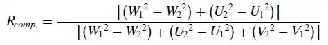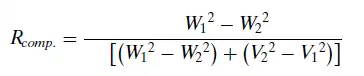 بدلالة مركبات السرعة يمكن التعبير عن درجة رد الفعل في الضاغط (بالإنجليزية:Compressor) بالمعادلة الآتية: