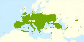 موطنه بلاد الشام والمغرب العربي وتركيا والقوقاز وكل مناطق أوروبا.[5]