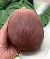![]() منظر جانبي للجمجمة. الدرز الإكليلي مبين باللون الأحمر. | |
