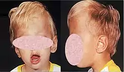 تسنم الرأس في طفل، ويُلاحظ ارتفاع الجمجمة مثل البرج.