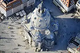 لم تنل مدينة ألمانية من تدمير الحرب العالمية الثانية ما نالته درسدن السكسونية. قُتل جراء الهجمات الجوية الشديدة في فبراير 1945 خمسة وثلاثون ألفاً وفق بعض التقديرات. وسقط وسط المدينة في الركام والرماد بكل معالمه، ومن وبينها كنيسة مريم العذراء الباروكية. كانت الأولوية لتأمين المساكن بأقصى سرعة بعد الحرب. تأجّل على ضوء ذلك ترميم الأبنية التاريخية إلى المرحلة اللاحقة التي ما تزال مستمرة. وهكذا بدأت العاصمة السكسونية ذات الـ 470.000 نسمةً تتزين بهدوء. أُعيد ترميم الكنيسة التي ظلت 50 عاماً كومة ركام للتذكير بالحرب. ويُعاد بناء الكنيس اليهودي الذي دمره النازيون إبان العهد النازي من أجل أبناء الطائفة اليهودية البالغ عددهم 250 شخصاً بعدما كانوا 5000 قبل الحرب.