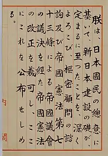 |CitationClass=تم تجاهله (مساعدة) - "Constitution of Japan". مؤرشف من الأصل في 28 ديسمبر 2017. اطلع عليه بتاريخ 08 يونيو 2015. الوسيط