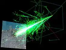 دش في الهواء واسع النطاق (عدة كيلومترات واسعة) سلسلة من الجزيئات المتأينة والإشعاعات الكهرومغناطيسية التي تنتج في الجو عندما الأشعة الكونية (أي واحد من أصل خارج الأرض) يدخل الغلاف الجوي.[1][2] تتالي المدى يعني أن الجسيمات الحادثة، التي يمكن أن تكون البروتون، وهو نواة، إلكترون، فوتون، أو (نادرا) البوزيترون، يضرب نواة الذرة في الهواء وذلك لإنتاج العديد من الهادرونات حيوية. اضمحلال الهادرونات غير مستقرة في الهواء بسرعة إلى جسيمات أخرى والإشعاع الكهرومغناطيسي، والتي هي جزء من مكونات دش. الإشعاع الثانوي الأمطار باستمرار، بما في ذلك الأشعة السينية، الميونات، والبروتونات، البروتون المضاد، جسيمات ألفا، pions، الإلكترونات، البوزيترونات، والنيوترونات.