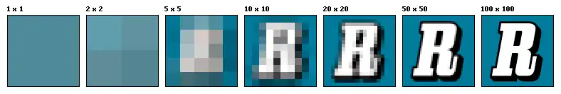 الشكل التوضيحي التالي يوضح كيف يمكن أن تبدو الصورة في مستويات مختلفة من دقة التفاصيل بالعنصورة، وذلك إذا تم إخراج الصورة (عرضها) في أجزاء مربعة حادة. (عادة ما يفضل إعادة إنشاء الصورة من العنصورات بشكل ناعم، ولكن لتوضيح فكرة العنصورات فإن المربعات الحادة تكون أفضل).