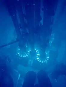 Real life: إشعاع شيرينكوف glowing in the مفاعل اختبار متقدم.