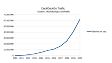 |CitationClass=تم تجاهله (مساعدة) - "DuckDuckGo Traffic". duckduckgo.com. مؤرشف من الأصل في 17 أكتوبر 2020. اطلع عليه بتاريخ 28 أغسطس 2020. الوسيط