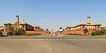 بوابة الهند وضواحيها هي واحدة من أهم المباني الواقعة في مدينة نيودلهي أو دلهي لوتينس (سميت نيو دلهي على اسم المهندس المعماري البريطاني البارز ادوين لوتينس) والمتصفة بالانطباع البريطاني الواضح. بوابة الهند تعتبر إحدى أشكال أقواس النصر وبنيت لتخليد ذكرى عديد من الجنود الذين قتيلوا خلال الحرب العالمية الأولى. ترتفع البوابة 160 قدما مع القوس يبلغ مقاسه 138 قدما. يسكن أيضا القوس شعلة خالدة كإشارة ذكرى الجنود الهنود الذين خسروا أرواحهم في الحرب الواقعة في سنة 1971 م مع باكستان. بيت رئيس الجمهورية أو راشبتي بهون الواقع في التناظر مع بوابة الهند في تلال رايسينا يعد هيكلا رائعا، يدل على أيام راج وبداية دلهي لوتينس. كما بني فيما مضى كمقر إقامة نائب الملك في الهند، عندما نقل البريطانيون عاصمتهم من كلكتا إلى دلهي، وحاليا هذا مقر للإقامة الرسميية لرئيس جمهورية الهند. الطريق الموجه إلى بيت الرئيس يبدأ من بوابة الهند ويسمى بمسار راج. وعلى كلا الجانبين من طريق راج، توجد المباني الرسمية لكبار الشخصيات المنتسبين للحكومة الهندية. آخر المبنى، الذي بناه البريطانيون خلال نفس الوقت، هو البرلمان أو سنسد بهون. يتميز البرلمان بكل صفات البناء الهندسية مع 144 عمودا وأعلى الطوابق الصغيرة. وهذا قاعة الاجتماع الرسمية لمجلسي البرلمان لدى الحكومة الهندية.