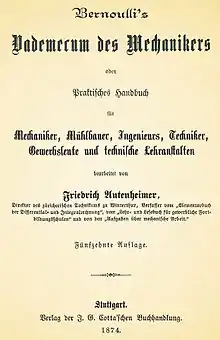 غلاف دليل مرجعي ألماني في الميكانيك يعود إلى سنة 1874.