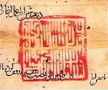 كلمة «دمغة» أصلها تركي، وكانت تعني «ختم خاص بقبيلة معينة»، في هذه الصورة تظهر دمغة من عصر المغول مكتوب عليها بالأبجدية العربية وبالكتابة الصينية.