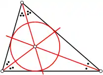 في الهندسة الرياضية، يُطلق اسم الدائرة الداخلية للمثلث على أكبر دائرة موجودة بتمامها ضمن المثلث أي أنها تلامس الأضلاع الثلاث للمثلث دون أن تقطع أي منها، مركز هذه الدائرة يدعى مركز الدائرة الداخلية للمثلث، ومسمى الدائرة الخارجية المماسة لمثلث هي دائرة تقع خارج المثلث وتمس واحد من أضلاعه وتمس مماسات الدائرتين الباقيتين.[1] لكل مثلث ثلاث دوائر خارجية مماسة، تمس كل منها ضلع من أضلاعه، ومن الممكن إيجاد مراكز الدوائر المماسة الخارجية من تقاطع منصفات زوايا المثلث الثلاثة.