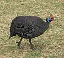 | دجاج حبشي | دجاج وادي غرب أفريقيا | أفريقيا | لحم، التخلص من الآفات، ونداء إنذار | ![]() |