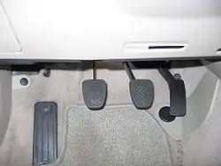 - دواسة الوقود) ، وتتحكم في امداد محرك السيارة بالوقود والهواء. وتكون عادة رفيعة وقريبة من أرضية السيارة تاركة المجال لكعب قدم السائق لترتاح على أرضية السيارة.