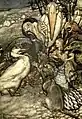 اخذت هذه الحيوانات بالتحديق علينا عند وصولنا، وظلت هادئة في مكانها، ولا نعرف هل كان لديها أجنحة لتطير بعيدا أو ساقين لتهرب، عندما نقترب منها. ومن بين هذه الطيور نوع يطلق عليها في الهند اسم دود-أرسين (Dod-aersen) (وهي نوع من الأوز الكبير). هذه الطيور غير قادرة على الطيران، وبدل الأجنحة لديها مجرد نتوءات صغيرة، ومع ذلك فإنها تستطيع الجري بسرعة كبيرة. جمعنا عدد منها في مكان واحد بطريقة تمكننا من إلقاء القبض عليهم، وعندما ربطنا ساق احداهن، اصدرت صيحات مزعجة مما جعل الاخريات يهبن لمساعدتها، وبالتالي تم القبض عليهن أيضا.[93]