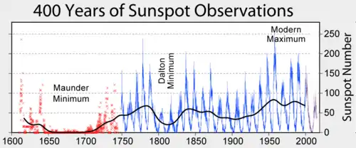 400 سنة من تاريخ البقع الشمسية (دورة وولف)