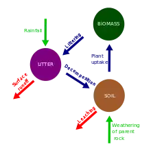 الماء أيضا من المواد الغذائية. وفي هذا السياق، يشير بعض الكتاب أيضا إلى إعادة تدوير الترسبات، والتي تساهم في تبخر داخل منطقة الترسبات في تلك المنطقة نفسها. هذه الاختلافات حول موضوع تدوير المغذيات استمرت لتستخدم، وتشير جميعها إلى العمليات التي هي جزء من الدورات البيولوجية الكيميائية العالمية. ومع ذلك، يميل الكتاب للإشارة إلى إعادة التدوير الطبيعية أوالعضوية أوالبيئية، أو الحيوي في إشارة إلى عمل الطبيعة، مثل استخدامه في الزراعة العضوية أو النظم الزراعية البيئية.