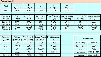 نقرأ في الجدول مقدار الحرارة التي زودناها للنظام، ونفترض الهواء كالغاز المستخدم وبأنه غاز مثالي. نحصل على :