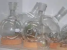 الدورق الكروي (بالإنجليزية: Round-bottom flask) عبارة عن دورق أسفله كروي الشكل قد يكون بغطاء أو سدادة ويستعمل في المعامل الكيميائية.[1] تصنع هذه الدوارق غالبا من الزجاج للأغراض الكيميائية وتوجد أنواع جديدة مصنوعة من البوروسيليكا المقاومة للحرارة. تتوافر الدوارق الكروية بأحجام مختلفة من 5 ميلي لتر إلى 5 لتر وتكون نهاية الدورق مخروطية الشكل (انثى) لتمكين توصيلها بالأنابيب والتواصيل ذات النهايات الذكرية. يوضع الدورق الكروي فوق حلقة دائرية لضمان استقرارها وتقبض من عنقها بواسطة كلابات خاصة بالمعامل.