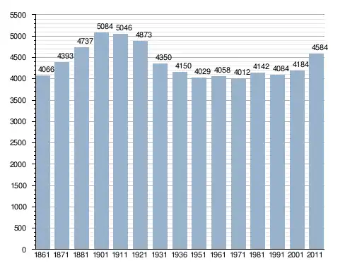 في سنة 1861 بلغ عدد السكان 4٬066 نسمة، وتطور العدد ليصل في سنة 2011 لـ 4٬584 نسمة.