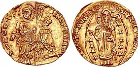 عملة ذهبية تقليد لدوقية البندقية ، وضربت باسم دورينو في الفوكا القديمة
