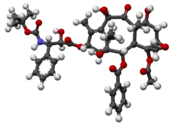 يباع دواء دوسيتاكسل تحت اسم العلامة التجارية (تاكسوتير) مضاد وعلاج كيميائي العديد من أنواع السرطانات.وهذا يتضمن سرطان الثدي، الرأس والرقبة، وسرطان الرئة ذو الخلايا الكبيرة. واستخدم هذا الدواء لفترة طويلة بحد ذاته عن طريق حقنات تعطى بشكل بطئ داخل الوريد.