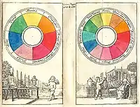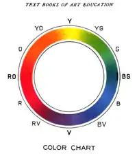 - تنظيم توضيحي مختصر لصِبغات الألوان على وجه دائري، تظهر العلاقة بين الألوان التي تعتبر ألوانا أولية، وألوانا ثانوية وألوانا مكملة، إلخ.