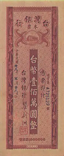 دولار التايواني القديم والتي كانت تسمى الدولار الصيني القديم